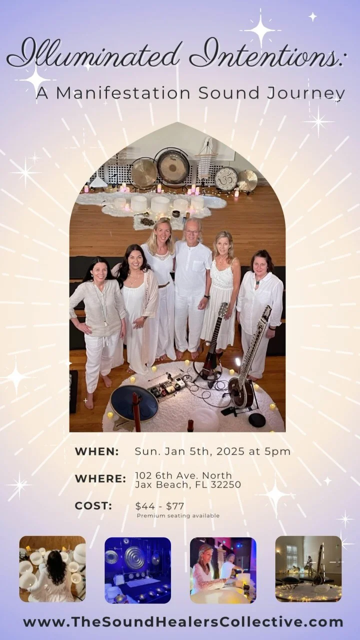 We are a heart-led soul family of sound healing facilitators rooted in Jacksonville, FL—gathered by purpose, guided by spirit, and united through vibration. Our mission is to co-create sacred soundscapes that nurture healing, deepen connection, and raise the collective frequency. Through intention, presence, and love, we offer experiences that invite stillness, expansion, and soul remembrance. ✨